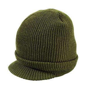 View full detailsThe Government Issue Wool Knit Radar Cap in Olive is crafted from 100% wool and made in the USA to military specifications. This durable knit cap f...