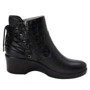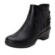 The Stevee Boot brings a bold new perspective to lace-up style. With laces positioned at the back, this ankle boot breaks the mold while a delicate floral texture and pewter eyelets showcase genuine character. The 2-inch platform gives you extra height and confidence, supported by a slip-resistant sole that keeps you steady. An interior zipper lets you slip on and off with ease, while the durable, stain-resistant leather upper handles everyday wear. The standout feature? A removable and replaceable footbed with suede lining that adapts to your comfort needs and extends your boot's life. Perfect for nights out or casual daytime looks, the Stevee combines unexpected design with practical functionality.