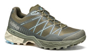 A polyester upper reinforced with TPU material offers protection and comfort while the Gore-Tex Extended Comfort Footwear lining guarantees waterproofness and breathability. The outsole package is made of a mono-density Eva midsole to assure the best stability, support, comfort and cushioning. The AS-Tech technology was designed and incorporated to give structure and torsion stability. The Asolo Cross outsole presents a self cleaning design and it assures the best traction and grip, thanks to the Sigma Grip compound, developed by Asolo. A TPU cap gives an additional protection, the thermoshaped tongue guarantees the best fit and the webbing lacing system assures a precise lace up.