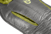 A pinnacle-performance 3-season 800 FP down bag, Riff™ offers a trim, athletic cut designed for side sleepers who crave space-saving packability. NEMO’s iconic Spoon® bags are cut wider at the elbows and knees so campers can easily shift positions throughout the night, and the Ultralight Spoon silhouette used on Riff maintains that extra room while cutting in tighter at the feet and shoulders. The result is a sleeping bag vastly more comfortable than a mummy bag, but still impressively compact. Riff includes a set of next-generation Thermo Gill™ vents on the chest to offer fine-tuned temperature control and a better outdoor sleeping experience. Each Gill features an interior and an exterior zipper with a draft-blocking intermediate layer, allowing several different configurations for dialing in the bag’s temperature without direct exposure to cold air. Our Blanket Fold™ draft collar at the neckline features a redesigned size and shape to further optimize sleep temperature. Tucked in, the Blanket Fold defiantly blocks any chill while mimicking the comfort of your bed at home. Pushed out, it helps dump excess heat instantly. Finally, Riff includes strategically designed baffles insulated with water-resistant, RDS-certified down that are placed vertically along the torso for comfort and aligned horizontally below the waist to prevent down migration. Riff™ is NEMO’s top-of-the-line, backcountry-oriented sleeping bag — and it’s also the latest addition to our suite of Endless Promise® products. Manufactured from a single type of material, this sleeping bag is 100% recyclable at the end of its life — just send it back to NEMO, and we’ll handle the rest.