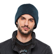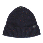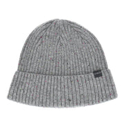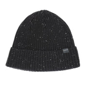 Fleck yarn ribbed cuff beanie with engineered top.