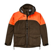 Designed and field-tested by hunters, our 3-Layer Field Jacket is as fully-featured as they come. The front shell pockets are snap- and gusset-expandable, and easily hold a box of 3” 12-guage shells. Their protective flaps secure with corrosion-proof snaps, which are easily operated with one hand, even gloved, thanks to an ingenious loop attachment. Pocket-bottom grommets allow water drainage if needed. Behind the shell pockets are side-entry hand pockets. Entry to the chest pockets is from the center, so they’re easy to access when wearing a strap vest or backpack. On the inside is a zippered security pocket for valuables such as your license, keys or phone. The back features a zippered game bag, with enough room for a couple of pheasants or a limit of quail. The two-way drawcord-adjustable hood and Velcro®-adjustable cuffs seal out the elements with a custom fit. Final polishing touches include an interior zipper that’s compatible with Filson zip-in liners (sold separately), and fabric loops on the chest for attaching transmitters, whistles or calls.