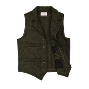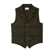 The notched lapels and pointed hem are a nod of respect to the clothing worn by the bold pioneers who settled the western half of our country. The vest, known as a waistcoat in Britain, was considered a requirement for a properly-attired man in that day. The vests worn on the American frontier were as much a tool as a garment for those rugged men. The pockets on the front were located and sized to provide quick access to timepieces, small notepads, tobacco pouches and other necessities while on horseback. Often while riding through brush, snagging of topcoats was a concern, and a sturdy vest provided the gear-carrying ability and weather protection that was required. The same features that made the vest so invaluable on the range make our Western Vest a versatile companion no matter where your journey takes you.