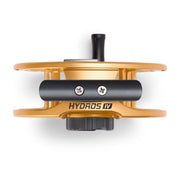 The new Hydros fly-fishing reel is the result of our desire to make something great that much better. We took a best-selling reel and removed unnecessary material to further reduce the weight while stiffening the narrow spool, which minimizes line stacking. We changed the drag knob to be more ergonomically accessible and comfortable to use. We further refined the seal on the sealed drag to protect the clutch bearing in the drag mechanism. We radiused the reel foot as on the Mirage for kink-free leader protection. The sealed drag with stacked carbon and stainless steel disc washers is still one of the strongest in the industry, with zero start-up inertia. Matte type II anodized finish, standard large arbor size which balances better with lighter-weight fly rod, and yet still offers excellent retrieval rates and less line coiling than standard arbor reels. Refinement and improvement are the hallmarks of quality. Matte black with silver accents, matte silver with charcoal accents.