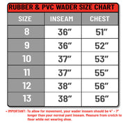 - 2-PLY RUBBER CHEST WADERS with tough Polyester shell for added durable waterproof protection.