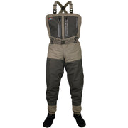 - DOUBLE TAPED NEOPRENE BOOTIES are protected by gravel guards. This wader is designed to be worn with wading boots.