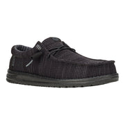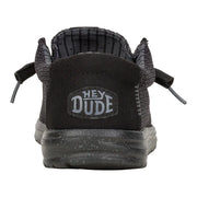 Experience all-day comfort with the Men's Wally Stretch Sox in Black/Black by HEYDUDE™. Featuring a soft cotton lining, breathable mesh sock liner, and a removable foam insole, these shoes deliver cushioning that feels like walking on clouds. The stretchy knit fabric, speckled midsole, and playful tassels combine style with an easy-on system, making them perfect for travel or relaxing days. Lightweight and flexible, their relaxed fit provides ample room for a laid-back, comfortable feel wherever you go.