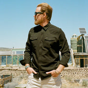 The Stockman Stretch Snapshirt is a western inspired snapshirt constructed of a stretchy poly-rayon-spandex fabric that will help you rope and wrestle anything in sight. Throw in the super cool colored snap buttons for a bit of Howler vibe and our original sunglass cleaning microfiber at the hem and you're ready for every ride.