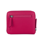 This Small Zip Around Wallet in Indian Pink is crafted from smooth leather and features RFID blocking to keep your cards secure. It includes an exterior ID window, a back zip pocket, and inside, an additional ID window, credit card slots, and an open pocket for currency. Compact at 4.5" x 4" x 0.5", it’s a stylish and practical way to carry your essentials.