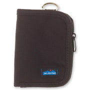 - Bi-fold wallet with snap closure, removable zip coin pouch with key loop, multiple internal cash, card, ID slots.