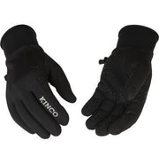 Black full lightweight four-way polyester softstretch brushed performance fleece wicks moisture, offers natural hand articulation & high-dexterity, & has exceptional breathability. Comfortable stretch-fit neoprene cuff helps to retain warmth at pulse-point & seals in body heat. Pieced fabric hem incorporates an added piece of material, which creates a finished look, holds all layers of the glove together, & prevents fraying