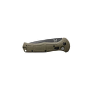 An explosive new design bound to take the battlefield by storm. The 9070SBK-1 Claymore™ with Green Ranger Grivory grip is a slender push button powerhouse, packed full of hidden features and inspired by one of the most notorious directional mines. Incorporating a new steel to Benchmade's portfolio of premium materials, the Claymore™ blade has been crafted from CPM-D2 to provide ample toughness and edge retention. Manufactured in the USA, the Claymore™ has set a new bar for closed break strength, making this our toughest folder to date.