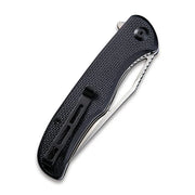 The Shredder Flipper & Thumb Hole Knife boasts an overall length of 8.46" and a 3.70" blade made of durable D2 steel. With a hollow blade grind and satin finish, this knife offers precise cutting ability. The coarse G10 handle and stainless steel liner provide a secure grip, while the caged ceramic ball bearing pivot assembly ensures smooth opening and closing. The liner lock and reversible clip add convenience and versatility.