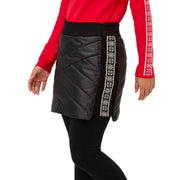 The Women's Carving Skirt in Black Glacier is your go-to for cozy warmth and effortless style during snowy strolls or après ski moments. Crafted from recycled polyester, it provides reliable insulation and weather resistance, while the silky-soft LENZING™ ECOVERO™ Viscose trim adds sustainable comfort and a polished look. Featuring patterned knit side panels and a hidden side zip pocket, this 16" insulated knit hybrid skirt balances function with fashion to keep you comfortable and prepared for chilly days.