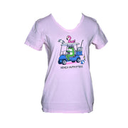 Women's Frog and Flamingo Golf Cart x Kenco Crusher V-Neck Tee