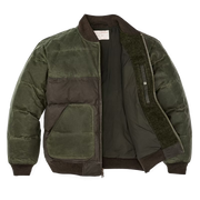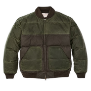 The Down Bomber Jacket pairs our signature waxed cottons with nature’s warmest insulation for heavy-duty warmth in a hip-length jacket. The torso is constructed from 8-oz. water-resistant oil finish Cover Cloth, with waxed 11-oz. Shelter Cloth for the shoulders and sleeves for increased durability and weather protection. The patch pockets are made from oil finish Shelter Cloth and lined with 100% wool for warmth. The classic bomber design features sturdy wool-blend ribbed cuffs and hem to keep warmth in and seal out cold wind. The insulation is 650-fill-power goose down that is ethically-sourced. Our goose down can be tracked back to the original farms to ensure humane practices are followed.
