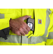 Stay visible and warm on the job with this men's high-visibility jacket in bright lime. Its waterproof shell protects against light to moderate rain, while the soft brushed lining keeps you cozy in cold conditions. Designed for practicality, it includes shoulder straps for your radio and a combination of zip and flap pockets to keep essentials handy. The reflective silver trim is segmented to enhance breathability, making this rugged jacket a smart choice for safety and comfort during demanding workdays.