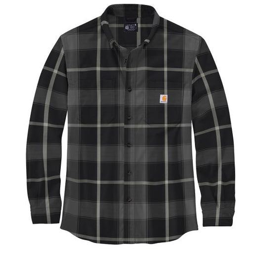 CARHARTTStay comfortable and stylish with the Men's Rugged Flex® Relaxed Fit Midweight Flannel Shirt in black plaid. Made from a soft 97% cotton and 3% spa...