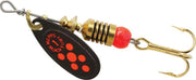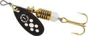 The Black Fury with a plain treble hook is one of the great all-time Mepps spinners. The special Black Fury blade spins closer to the body than the classic Aglia blade so it easily fishes shallow to mid-depths. All Mepps Black Furys are excellent low light (early morning, evening or overcast) spinners as well as a perfect choice for sunny days when contrast with the brightness of the water, weeds and structure is needed. Whether you select a plain or dress Black Fury is strictly personal preference. Most panfish and bass fishermen prefer dressed spinners, while most trout and salmon fishermen prefer plain treble hook Black Furys. Either is very effective at catching a wide variety of freshwater game fish. Largemouth bass, smallmouth bass and walleye fishermen should also consider a Black Fury Combo.