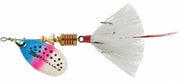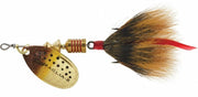 Mepps dressed Aglia spinners come in sizes #00 through #5. A #00 is a Mepps Ultra Lite and it weighs only 1/18 oz. These little trout and panfish lures are dressed with natural hackle. They are also available as wooly worms. The #0 Aglia Spin Fly is also a Wooly Worm. It too is perfect for both panfish and trout and weighs 1/12 oz. Larger dressed Aglias weigh up to 1/2 oz. (#5). The hooks on dressed Aglias in sizes #1-#5 are dressed with natural squirrel tail or bucktail.