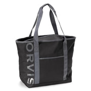 This durable 600-denier polyester tote bag stands up to the rigors of airline travel, commuting to work, or even a picnic in a field. The tough PVC backing and treated interior can be easily wiped clean or even hosed out. Three interior slash pockets organize small items, a zippered pocket holds keys or credit cards, and a zip top closes securely. Exterior stash pocket gives easy access to larger items. Roller sleeve allows tote to be placed over the extended handle of a rolling piece of luggage. Ballistic polyester bottom and edge binding.