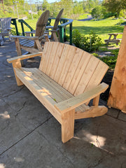 This Adirondack style bench will make your deck, patio, or garden your favorite place to relax and unwind by yourself or with a friend. Handcrafted by John Finnan right here in New York, the natural white cedar will develop a patina over time.