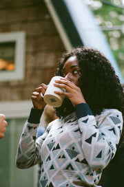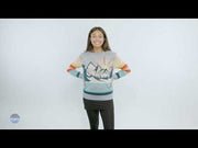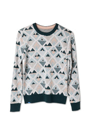 Coolest sweater EVER. Semi-fitted, birdseye jacquard fully fashioned crew neck sweater, ribbed collar, cuffs, and hem, hip length.