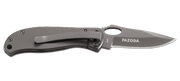 This sleek frame-lock folder combines style with serious functionality. Featuring a titanium nitride-coated blade that resists corrosion and a stainless steel handle with matching gray coating, the Pazoda™ is built to handle whatever you throw at it. The brushed finish on the outer surface leaves plenty of room for personalization through imprinting or engraving. The oval blade hole enables smooth opening with either hand, while strategically placed grooves on the blade give you the control you need for precise cuts. Durable, dependable, and ready for action.