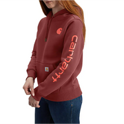 Cold winter mornings are a lot more comfortable with this women's cozy hoodie. Made of heavyweight fleece, the sweatshirt is brushed on the inside for extra softness. It has a relaxed fit that allows for easy layering, and it's finished with a Carhartt logo down the sleeve.