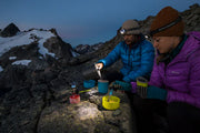 The Trail Lite Duo Cook Set delivers all the lightweight, space-saving benefits of a minimalist cook set, without forcing you to be Spartan about what you cook. The system features a tall 2 liter hard-anodized aluminum pot that accommodates two and keeps the menu options open. The dish set includes two color-coded MSR DeepDish™ Bowls and Insulated Mugs, which nest perfectly inside the pot for all-in-one packing convenience and space-maximizing efficiency. The folding, locking handle keeps it all in place inside your pack as you cover the miles.