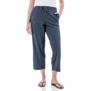 The waves are lapping at the sand, and you can hear their rhythmic song from a charming hillside cottage overlooking the ocean, savoring the last drops of coffee in your mug. The possibilities in this beachside fantasy are endless and the Corina Recycled Crop Sweatpant is here to accompany you for every moment. From strolling local farmers' markets to lazy bike rides, this lightweight terry crop pant is deliciously soft and lovable. The eco-conscious fabric is tailored to breathe, move, and retain its shape. It even resists wrinkles! Rib knit details at the waistband and front pocket openings polish the clean look. Pair this look with the Corina Pullover, Sweatshirt, or Hoodie, all of which utilize the same, luxuriously soft fabric.
