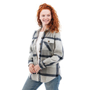 The Women's Stevi Plaid Shirt Jacket in Grey is your go-to layer for unpredictable weather and busy days. Its oversized, relaxed fit gives you plenty of room to layer comfortably, while the classic plaid design keeps you looking effortlessly stylish. Featuring two button-flap chest pockets and a large shirttail hem, this 29.5” shirt jacket combines function and flair. Made from a cozy blend of polyester and wool, it’s easy to care for with machine wash and tumble dry. Perfect for everything from coffee runs to last-minute adventures. Designed in the USA, made in China.