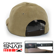 The corduroy wood duck hat is built on our Riverside 6-Panel rope cap style. This unique wood duck hat design features a vintage throwback style on corduroy fabric. Our throwback camo is printed on the under crown and visor for a finished look. Our COMFORT SNAP™ snapback closure combines the stretch of elastic with the adjustability of a snapback, allowing for a custom stretch fit. Lastly, this wood duck hat features our American™ Fit sizing that fits men’s US head sizes MD – XX.