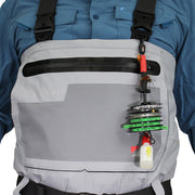 The GLIDE breathable stockingfoot chest wader is part of our Pro-Series, designed for performance and value. Utilizing the best components, quality craftmanship, and waterproof breathable 4-ply nylon performance fabrics. Featuring double reinforced lower legs full size zippered chest pocket with fleece lined pass through chest pocket. Designed to be worn with wading boots, the double sealed neoprene booties are protected by a 4-ply nylon gravel guard with lace hooks. Lastly, the Glide features dual attachment points for quick access to fly fishing essentials like floatant, or hemostats. Available in SM - 3X and Stout sizes.