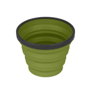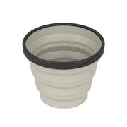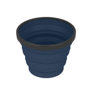The X-Mug is a collapsible camp mug with a 480 ml capacity that is also calibrated as a measuring cup. The food-grade, flexible silicone sides collapse making it a small compact disc sized dinnerware piece that nests neatly with other X-Series dinnerware and X-Pots, while the rigid ring creates a sturdy drinking vessel and prevents scalded fingertips.
