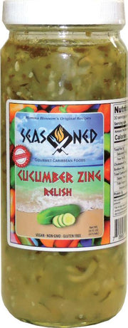 - Add a little zing to any meal or appetizer with our gourmet relish. Versatile and a customer favorite, it is sure to be the hit of the party. It is perfect for easy and casual entertaining. Get creative in the kitchen without the stress. Bursting with the garden fresh aroma of rosemary, crunchy cucumbers and flavorful spices, our all natural relish is sensational on hamburgers and hot dogs or mixed in with potato salad. Try it and you'll taste the difference.