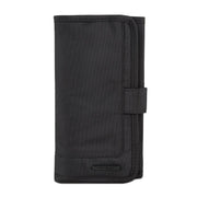 The Travelon Deluxe Tech Accessory Organizer is made from durable polyester. It folds up into a slim shape that makes it efficient use of space in any tote bag, briefcase, backpack, or travel bag.