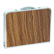 Table top size 48" x 24". Table legs adjust from 22" to 27.5" table height. Smooth MDF table top made with strong coating. Fire resistant. Long lasting rustproof aluminum frame. Lightweight & folds compact. Folded size 25" x 25". Convenient carry handle. Color green.