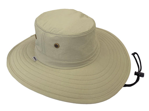 BRONER HAT AND GLOVES CO.The Women's Ponytail Rafter Big Brim Hat in Light Khaki is perfect for outdoor adventures. Made from 100% nylon, it features a dimensional brim mea...