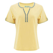 Aventura's female-led design team matched sustainable materials and delicate, feminine details to create the Kateri Short Sleeve Top. The cotton sourced for this top is from Better Cotton Initiative™, which is a global non-profit that teaches farmers how to act as stewards for their water, land, and community. It is considered a sustainable option, as is TENCEL™ Modal. Together, these fibers create a lightweight, breathable shirt that can stretch, drape, and retain its shape. The embroidery details along the neck and front placket make this top a standout.