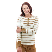The Fair Trade Certified™ Nicole Henley is a cozy waffle knit top perfect for staying warm as the weather cools. Crafted from sustainable fibers - organic cotton and TENCEL™ Lyocell - this long sleeve is as light on your conscious as it is your body! Together, these fibers create a soft and breathable thermal top with the perfect amount of stretch. We love waffle knits for winter because of their enhanced ability to regulate temperatures; they allow for excellent airflow without allowing cold winter air to directly attack your skin. Plus, they have an ultra-cozy feel! Polished with a coordinating stripe at the cuff, neck and placket's ribknit trim, this top is an attractive option for keeping warm this winter.