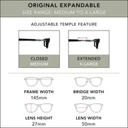Introducing the must-have accessory for avid readers - Original Expandable Reading Glasses! With a sturdy rigid headband and 180 degree hinges, these glasses provide unparalleled comfort and durability. You can easily adjust the temples to your preferred fit and the acrylic lenses ensure crystal clear vision. But the real game-changer? The expandable width and magnetic bridge connection for a perfect fit every time!