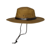 The Tin Cloth Bush Hat delivers maximum coverage with its 3” wide brim, and it’s built for to last a lifetime. The crown boasts ventilating grommets and a leather hatband. The interior sweatband is made from comfortable, absorbent cotton. Equipped with a removable leather drawcord for security in gusty winds.