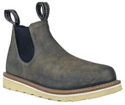 Introducing the Men's Colt Soft Toe Chelsea Boot in Grey. Crafted with premium tumbled leather and a soft toe design, these boots offer both durability and comfort. With a Good Year Welt construction and ASTM F2892-18 EH rating, the Colt is stylish and functional for any job.