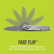 The EDC Fast Flip™ Knife delivers reliable performance in a compact package. Its 8Cr13MoV blade with bead blast finish resists wear while maintaining a polished appearance, and the partially serrated drop point design handles everything from precise cuts to sawing tasks. The ball bearing pivot system opens smooth and responsive, while the liner lock keeps things secure during use. Weighing in light and slim, it's built for everyday carry—the deep-carry pocket clip keeps it locked down whether you're in the field or heading out for the day.