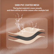 The FLEX BUCKET features a unique water valve design that makes filling it quick and easy. Its large capacity and portable foldable design are perfect for camping and outdoor use. The inner layer is crafted from waterproof PVC fabric to prevent leaks and stains, while the outer layer uses tear-resistant PVC mesh for added durability. Reinforced stitching and a strong webbing handle ensure it can carry heavy loads without trouble. Made from food-grade, non-toxic materials, this self-supporting bucket stays upright no matter how much water you fill it with.
