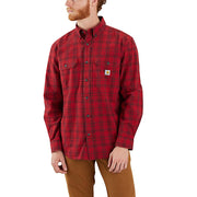 Chopping wood or working in the shop, this long-sleeve men's chambray shirt offers work-day comfort in 100% cotton. It has a midweight feel and a classic plaid look. The loose fit makes for easy layering and ease of movement.