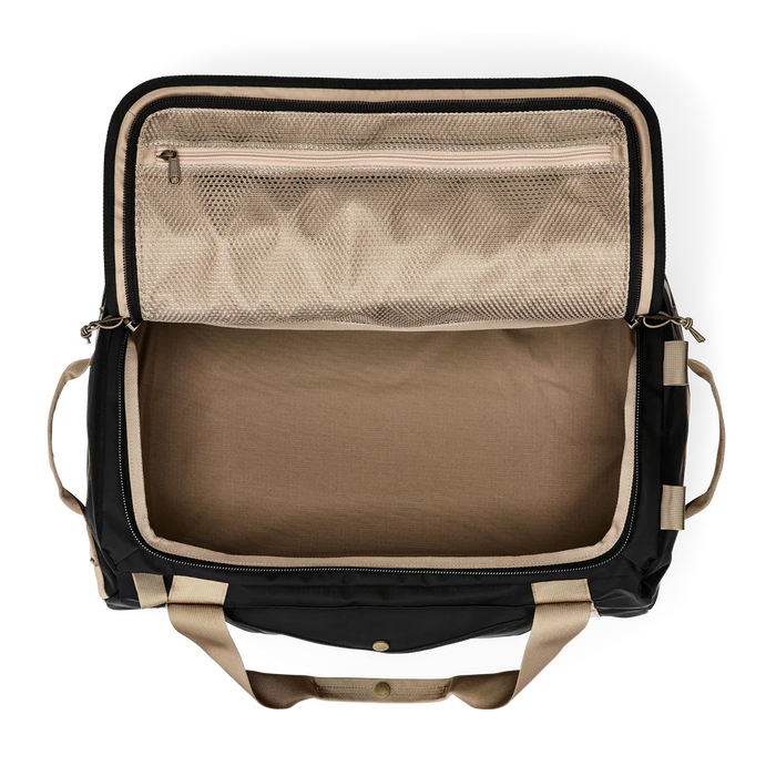 Padded, contoured shoulder straps with an adjustable sternum strap enable hands-free carry. They are removable to prevent snagging during transport. The full length of the main compartment’s U-shaped zipper is covered by an extended storm guard for added water protection. The endcap grab handles and main carry handles are made from strong, durable nylon webbing. An interior zip-close hanging pocket and exterior snap-flapped pocket keep small essentials organized, and the entire top opening panel is covered with a zippered mesh pocket.