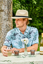 The Miracle Safari Hat combines a 90% paper and 10% nylon blend for a lightweight yet durable design that keeps its shape naturally and springs back if crushed. It features a pleated palm print band and a comfortable grosgrain sweatband inside. With a 2 1/2” brim, this hat offers both style and sun protection, perfect for your outdoor adventures.