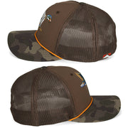 This Wood Duck Hat is on our Riverside 6-Panel Trucker hat style with mesh back. Coupled with a structured front panels and old school camo visor. Additionally, our COMFORT SNAP™ elastic snapback closure which combines the stretch fit of a custom cap with the adjustability of a snapback. Lastly, this wood duck hat features American Fit™ sizing which fits men's head sizes MD - XX.